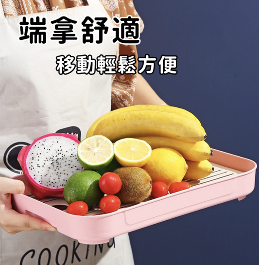 多功能瀝水盤 多功能雙層瀝水盤 塑膠長方形置物盤 廚房托盤 家用水果盤 茶盤 多用瀝水盤 北歐風瀝水盤