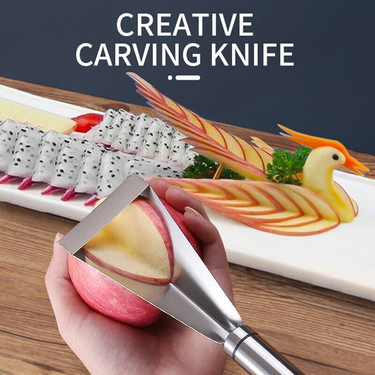 超簡單水果雕花刀 新手用不傷手不銹鋼水果推刀 蘋果青瓜造型器 條紋雕花刀 花式擺盤切菜器切片刀 廚房水果擺盤必備工具