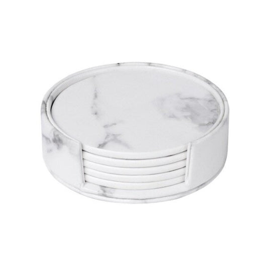 白色 大理石紋杯墊 雙面皮革防燙咖啡啤酒茶杯墊 杯墊