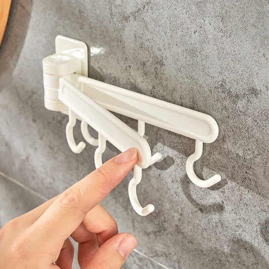 日本KM.665.多用轉軸掛鉤 雙轉桿六鉤掛架 粘膠式廚房小物掛架