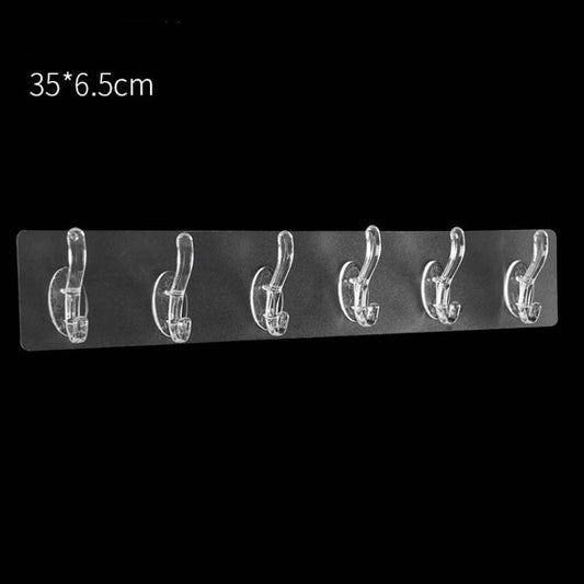 透明掛勾免打孔貼墻強力六連排衣帽粘鉤門後廚房衛生間衣帽大掛勾 創意無痕粘膠掛勾 六連勾 透明衣帽鉤六連勾 餐具瀝水掛勾 包包掛勾 廚房收納架 浴室置物架掛鉤