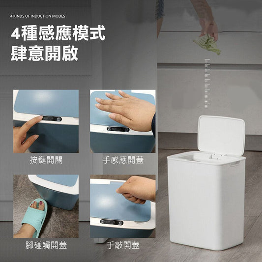 智能垃圾筒14L - 藍色 感應/輕敲/腳踢/按鈕都能開蓋