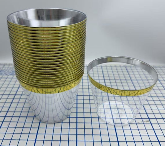 【25個】9oz金色邊一次性杯子(270ml) 塑膠杯口杯 即棄膠杯 透明膠杯 喜慶 派對 宴會 生日 酒杯 露營聚會 party必備