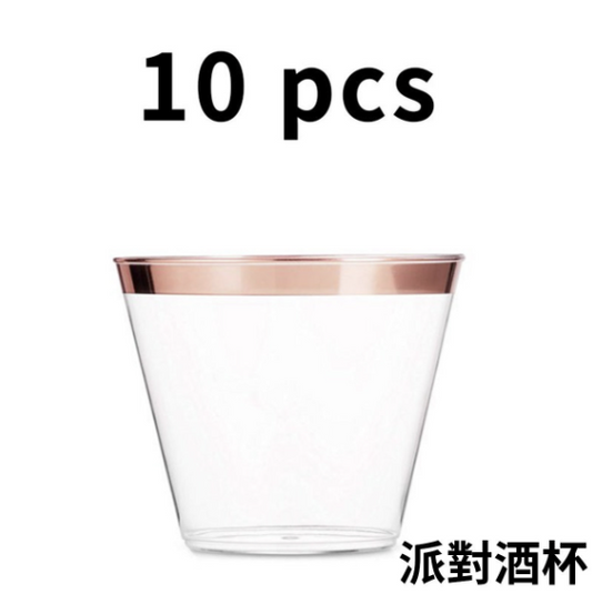 270ml 玫瑰金邊一次性杯子 (10個) 即棄膠杯