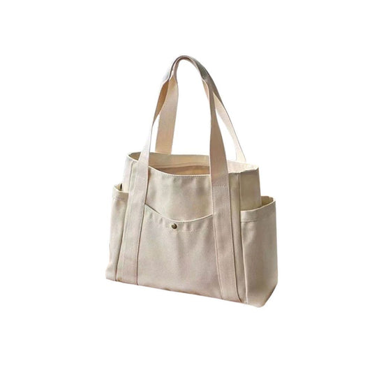 [米白色] 帆布包 手提袋 手挽袋 單肩包 大容量多口袋 [平行進口]
