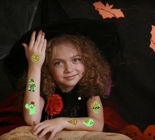 [萬聖節-螢光] 兒童紋身防水貼紙(一次性) 1套10張 隨機款式 {H1d4b}