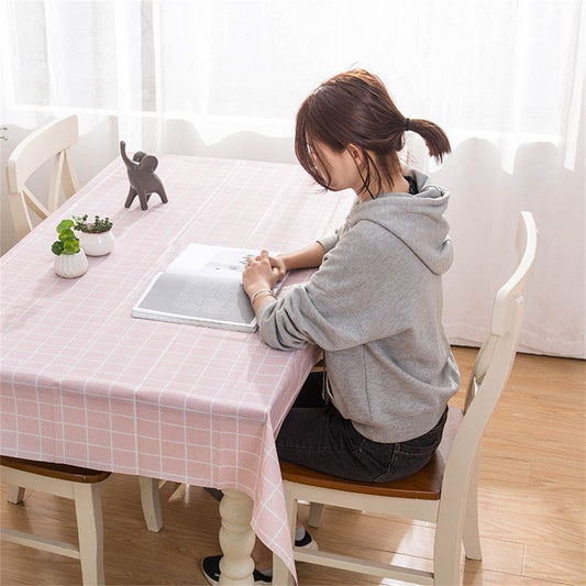 [粉色] 日系小清新防水免洗格仔檯布 家用防水檯布 防油防燙檯布 餐桌茶幾免洗檯布