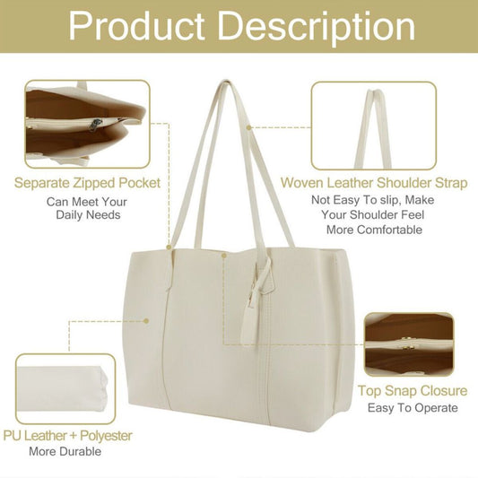 [米色] 大容量包包 休閒包 簡約PU單肩手提購物包