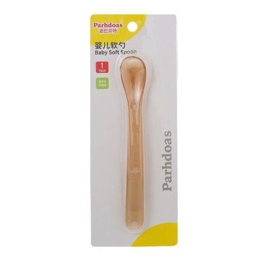 (琥珀色/1個)寶寶矽膠勺 嬰兒軟頭輔食勺 新生寶寶餵養勺 兒童訓練餐具