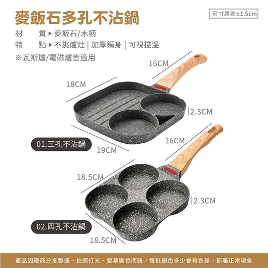 麥飯石多孔不沾鍋 多格不沾鍋 麥飯石不沾鍋 四孔多功能平底煎鍋 多孔煎鍋 平底鍋(四孔/電磁爐燃氣灶通用)