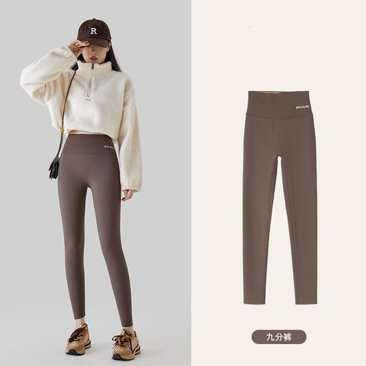 鯊魚褲 鯊魚皮打底褲 內搭褲 鯊魚褲 芭比褲 緊身褲 緊身長褲 壓力褲 外穿保暖鯊魚褲(九分/深咖 )