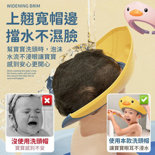 鴨鴨寶寶洗髮帽 雙導流槽不濕眼 兒童浴帽 兒童洗頭帽 防水護耳洗髮帽 可調節矽膠浴帽 包被巾 肚圍