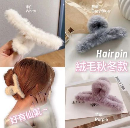 鯊魚夾 - 毛毛系列【米白色 秋冬絨毛】 #髮夾/仙氣髮飾/氣質/頭飾/髮量多/造型