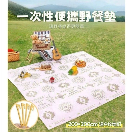 (暖沙色200*200cm·送4枚地釘)一次性便攜野餐墊 戶外隔髒防潮野餐墊 防水防油沙灘墊 沙灘/草坪/野營地墊 新升級 無異味 防水防潮