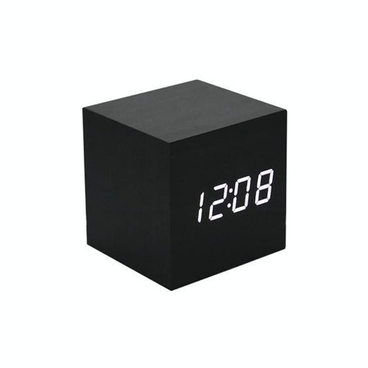 超簡約日系方形黑木紋竹LED時鐘