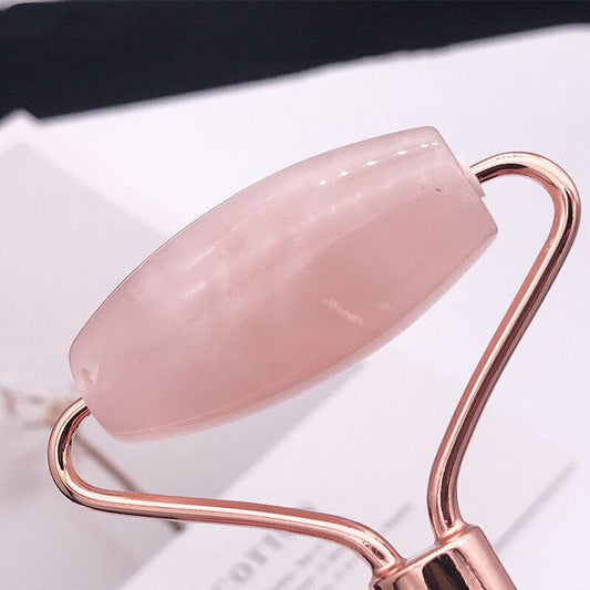 粉晶滾輪玉石臉部按摩刮痧玉推美容儀器 天然粉水晶美容按摩瘦面套裝(包括玉石滾輪) | 櫻花粉配玫瑰金色 | 美容儀 玉石滾輪刮痧按摩工具套裝 養生經絡保健套裝 抗衰老皺紋面部按摩器 清除毒