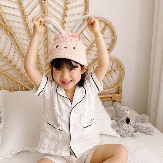 Japanese shower cap quick-drying shower cap fiber towel quick-drying towel absorbent hair cap quick-drying absorbent cap children's coral velvet dry hair cap (white/18*21CM)