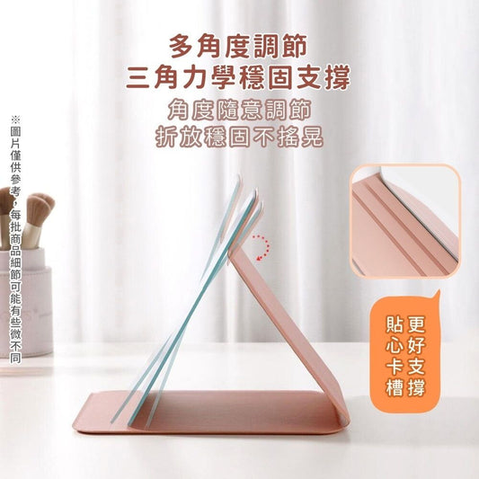 Desktop folding mirror leather folding mirror portable mirror makeup mirror portable mirror vanity mirror folding mirror vanity mirror (peach pink/large style)