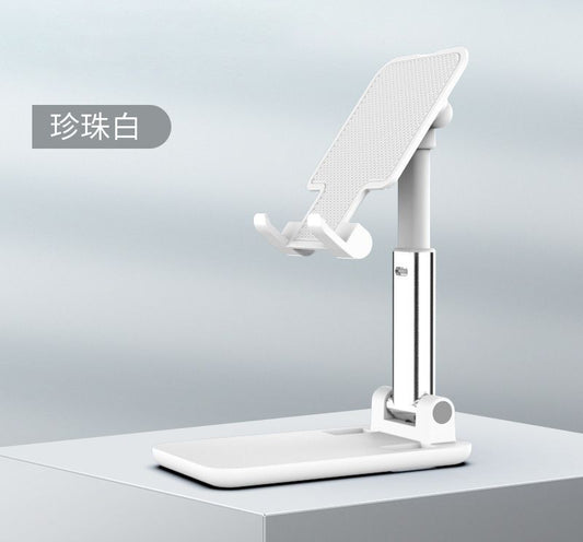 自由升降+多角度調節!可折疊手機支架|預留充電空間 不擋畫面 穩固承重 摺疊易收納 頸椎保護 一架多用|家用辦公室Office用 iPad Mini手機支架 桌上追劇煲劇支架 平板電腦電話支架(白色)