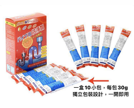 Magic water pipe drain cleaner (1 box of 10 packs) Japan's powerful safety drain pipe toilet kitchen cleaner cleaning pill detergent prevents clogging, removes odors, eliminates flying insects, aromatic fruity orange smell