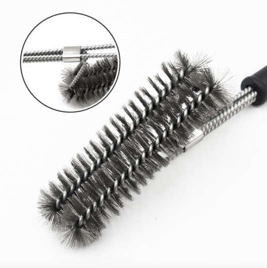 15-inch three-head bbq stove brush barbecue brush three-head wire oven grill cleaning brush practical barbecue tool shovel