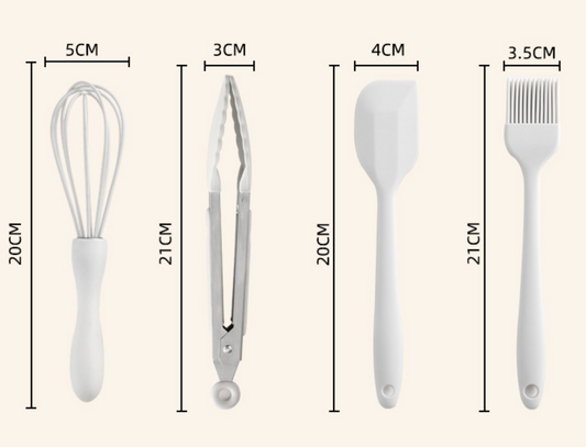 Food grade silicone mini baking tools 4-piece set mini baking spatula oil brush egg beater mini food clip cooking set