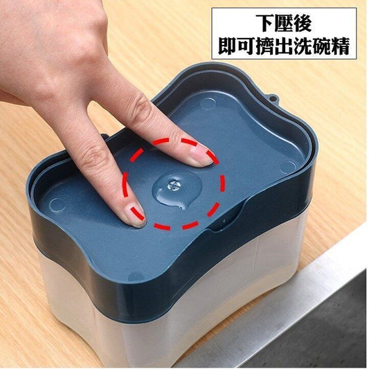 送清潔海綿 控量按壓式洗潔精盒 自動加液器按壓式 廚房洗潔精液盒 自動出液盒 百潔布 洗碗皂液盒 百潔布 洗碗刷皂液盒 瀝水架 廚房用品 清潔液盒(白色/送清潔海棉) 百潔布 海綿