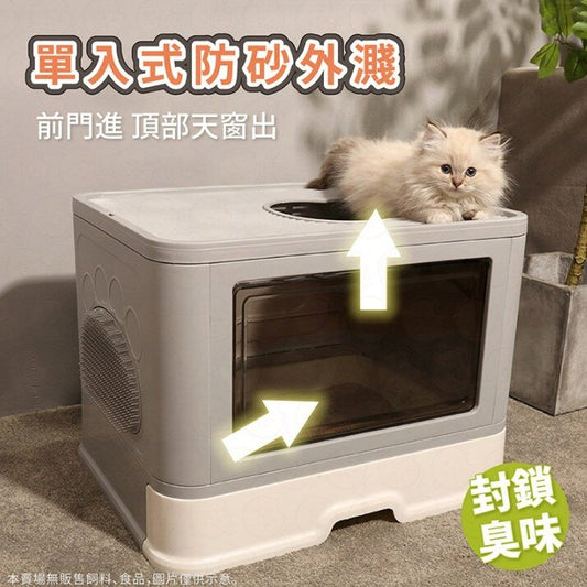 Upgraded top-entry cat toilet with itch and deodorization design. Foldable drawer-type cat litter box. Foldable cat litter box. Large capacity. Closed. Anti-splash. Anti-loose sand. Deodorizing. Fully enclosed.