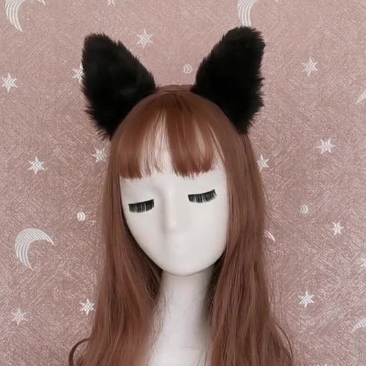 Japanese handmade cat ear hairpins | Plush simulated animal ears cat fox hairbands, unisex and cute, Halloween/Christmas/Cosplay/Lolita/masquerade party black cat headdress hairpin hairpin accessories (black)