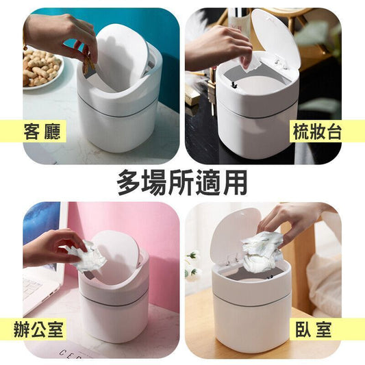翻蓋方便!日式簡約桌面垃圾桶|2L大容量 超大開口 圓潤折角 優質材質|多功能日系迷你揭蓋垃圾桶 家用客廳書桌廁所洗手間汽車用小垃圾筒 書檯書桌桌上化妝檯垃圾箱(白色;翻蓋款)