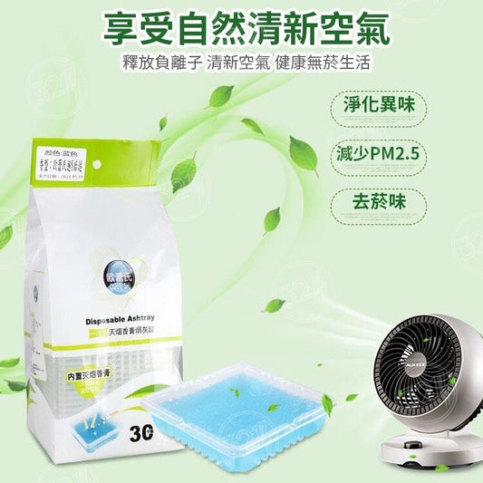 30個 一次性除臭煙灰缸 拋棄式菸灰缸 一次性香薰煙灰缸 除煙味 空氣清新 除2手煙 二手煙 戶外用 家用 滅煙神器 車用煙灰缸 滅煙沙 煙灰清潔劑 滅火劑(藍色/1包30個)