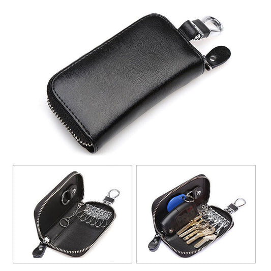 Brown key bag men's zipper bag first layer cowhide car key bag business waist hanging key bag