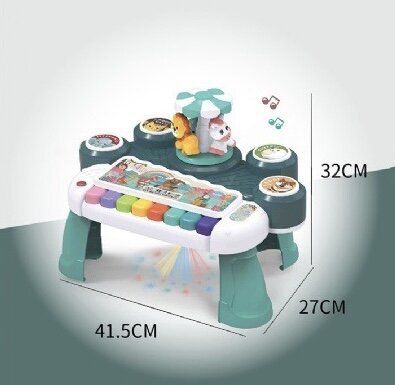 旋轉多功能電子琴 可愛動物卡通 旋轉益智音樂琴 嬰幼童玩具 兒童玩具 安撫玩具 電子琴 音樂鋼琴 鋼琴初學 旋轉益智玩具 幼兒教育益智音樂玩具 多功能電子琴桌玩具(綠色) 樂器玩具