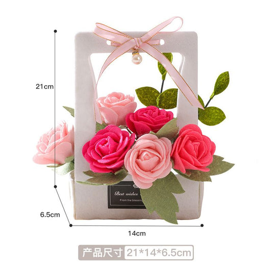 DIY不織布玫瑰花籃 兒童手工親子勞作新手入門向 小朋友手作創意手提花籃 七夕情人節母親節父親節禮物生日結婚心意女朋友禮物 家居辦公室假花擺設 不織布材料包製作 幼稚園益智玩具(粉色)