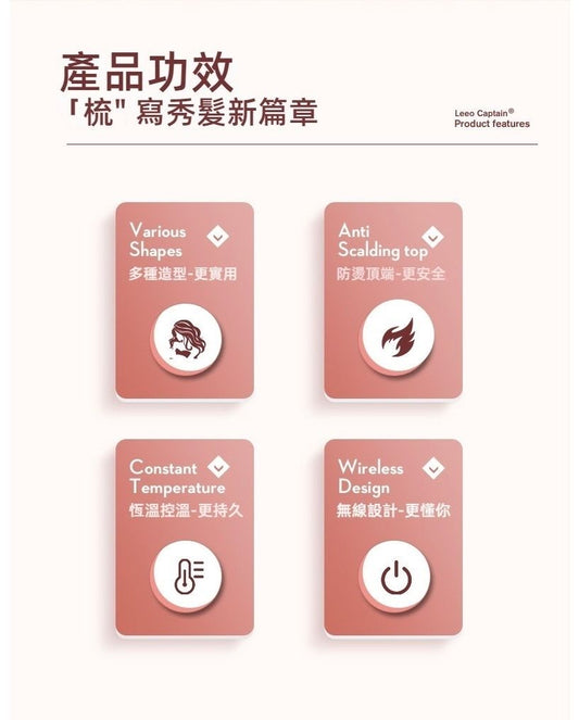 USB Rechargeable Wireless Curling Straightener Hair Care Styling Adjustable Temperature Curling Iron (Sakura Pink) Styling Hair Comb