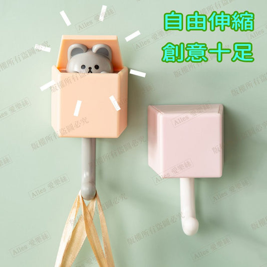 2 animal traceless hooks, hook-shaped hooks, cat key hooks, cute no-punch hooks (little brown bear + pink cat/2 sets)