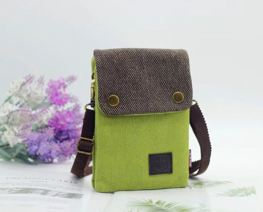 Casual fabric diagonal mobile phone bag, cigarette bag, small miscellaneous bag, tissue bag, lipstick shirt, iPhone Samsung - Nostalgic Green