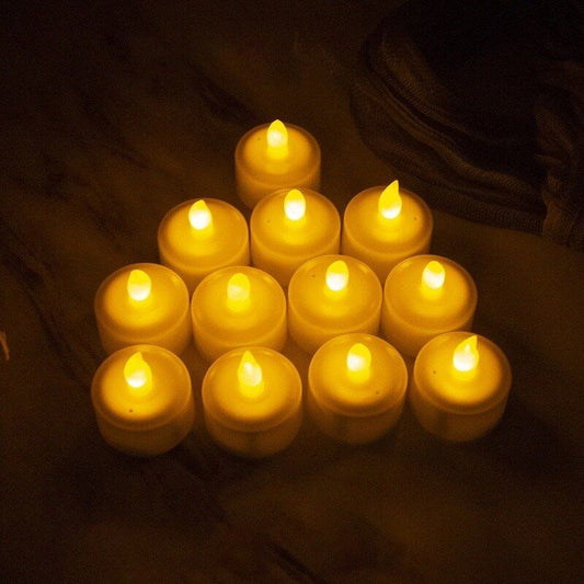 12個 LED電子蠟燭 仿真蠟燭 燭光晚餐 蠟燭燈 情人節 氣氛燈 求婚 告白 小夜燈 佈置燈 求婚佈置 造型燈 發光蠟燭 電子蠟燭LED(暖燈/12個套裝/附電池) 餐碟