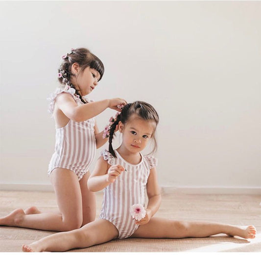 Girls' lace one-piece swimsuit (comes with swimming cap/lace strip/size 7/height 90-100cm) beach wear