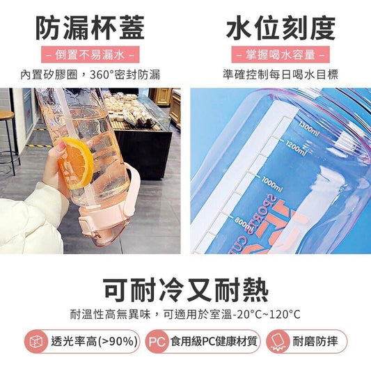 2000ml 超大容量運動水壺 耐熱水壺 耐熱水樽 耐熱耐冷水壺 吸管水壺 學校水樽 超大水樽 學生水樽 學生水壺 見字飲水 防漏水壺 安全物料 無毒安全 健身水壺 塑膠水壺 超大容量塑料水杯(黑色/