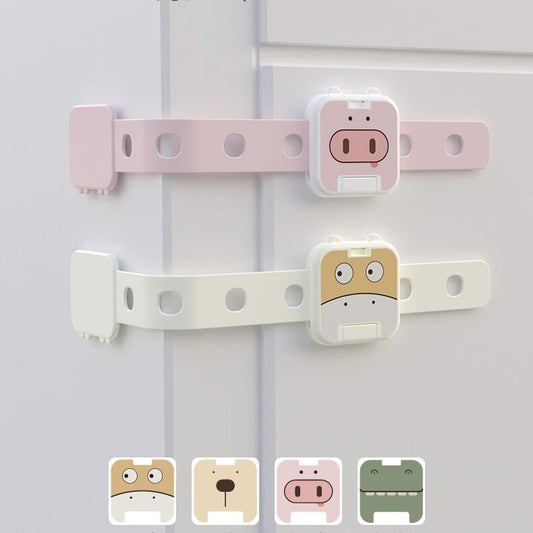 買二送二 兒童卡通多功能無痕黏貼安全鎖 無痕粘貼抽屜鎖 兒童安全櫃桶鎖 可愛家品 防夾手 免打免 簡易操作 (買長頸鹿 + 小豬 送 小熊+鰐魚/共4個) 安全鎖 插頭保護塞