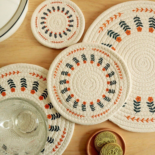 24cm woven insulation mat dining table mat light luxury Nordic cotton printed placemat plate mat coaster