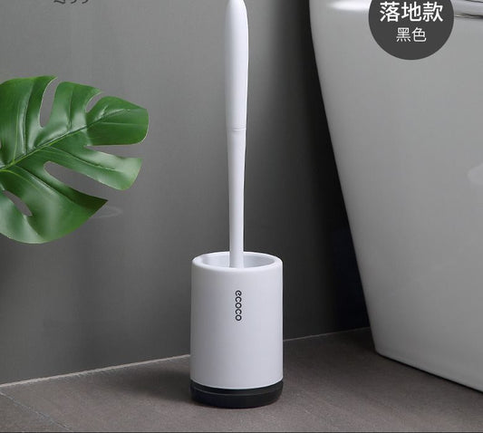 (White with black base) Ecoco long handle toilet brush with base (porcupine brush) simple household toilet cleaning soft bristle brush set toilet brush