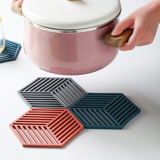 (Red) Nordic style hexagonal heat insulation mat (line mesh) pot mat tea coaster anti-slip dish mat high temperature resistance heat insulation mat hollow pot mat bowl anti-scalding plastic place mat rubber table mat