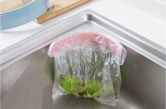 (Pink) Suction Cup Openable Plastic Garbage Bag Hanger x 1 Hanging Trash Can Kitchen Waste Bin Kitchen Trash Can Garbage Bag Hanger Trash Can