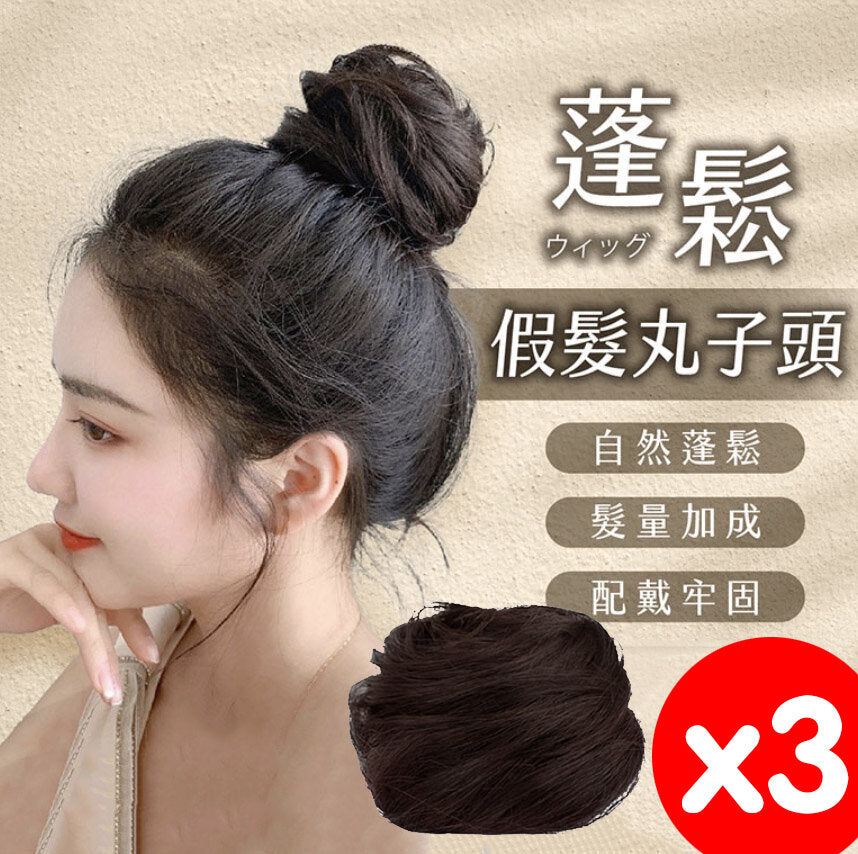 假髮丸子頭 髮丸子頭 丸子頭 髮包 假髮髮圈 髮包頭 丸子頭假髮包 假髮 蓬鬆假髮髮包 盤髮髮包 【深棕色】 3個一套 橡筋Hair