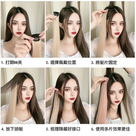 2片无痕发片夹流行色发夹彩色挑染接发片不伤发简易操作易用长发头饰隐形假发挂耳假发片夹式发片仿真染发片挑染发片美发染发造型挂耳染假发片(白茶灰/2片套装) 造型及工具