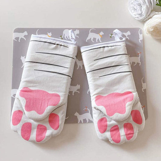 1對-可愛的貓貓焗爐手套 肉球手套 耐熱烹飪手套 防燙耐高溫廚房隔熱手套 烤箱烘焙手套