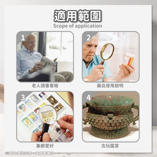 手持放大镜加厚双镜片110mm LED灯阅读高倍数放大镜放大镜