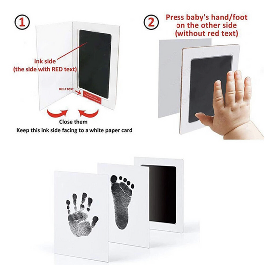 粉红色宝宝免洗手足印台免冲洗手足印台不沾手新生儿纪念成长纪录免洗印墨脚印手印足印印油印台印记沙画胶画